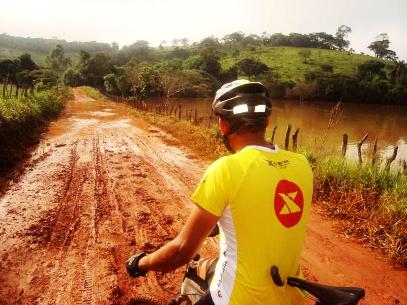 2º pedal da viagem a Minas Gerais. Dessa vez nosso destino foi à simpática cidade de Santana Do Garambéu, próxima a região da serra de Ibitipoca. Saímos meio tarde de casa, ficamos enrolando e também tentando arrumar o ciclo computador do Bruno que arrebentou. Sem sucesso seguimos nosso destino. Praticamente todo trajeto era desconhecido por nós. Logo de inicio as margens do rio Grande deparamos com outra enchente, desta vez mais fácil de superar. Para passar utilizamos um caminho que foi aberto ao lado no pasto mesmo. Vencido o obstáculo era hora de começar a encarar o sobe e desce das montanhas de Minas Gerais. E que sobe e desce eram subidas longas com descidas alucinantes. Nosso caminho de ida, todo ele em estradas de terra estava sempre sinalizando nosso destino, o que nos ajudou bastante. Em um momento encontramos uma vaca no meio da estrada, a mesma se encontrava assustada, o que acabou causando medo em nós, pois ela poderia investir sobre a gente com seus chifres afiados. Sorte que depois de algum tempo conseguimos contorná-la e seguir nosso pedal. As subidas continuavam sempre longas e parecendo intermináveis. O sol sempre quente o que aumentou um pouco o desgaste. Depois de 22 km e de uma forte descida seguida de uma fortíssima subida chegamos a nosso destino. Nesse momento a fome já batia e ainda sentíamos o cheirinho bom do almoço nas casas, isso acabou com nós. Sorte que na cidade encontramos o restaurante do Zé Manoel com uma deliciosa comida por um precinho de apenas R$ 8,00, podia comer a vontade, então esbaldamos, comemos muito a comida estava maravilhosa, recomendamos a todos que estejam passando pela cidade que almocem lá. Terminado o banquete procuramos nos informar com o dono sobre alguma cachoeira e ele nos indicou a cachoeira da água limpa, apenas 3,5 km da cidade. A cachoeira faz jus ao nome, muito linda, com sua queda de aproximadamente 15 metros forma um poção de águas esverdeadas, um encanto para quem quer desfrutar dessa maravilha. Aproveitamos para tirar fotos e dar um mergulho, afinal o sol estava bem quente. A vontade era de ficar ali por muito tempo porem ainda tínhamos um longo trajeto pela frente. Voltamos no restaurante do Zé Manoel onde chupamos picolé para dar novas energias para a volta. A volta foi por outro caminho, metade inicial totalmente desconhecida, para minha surpresa os 20 km iniciais encontram-se asfaltados, o que acabou rendendo a pedalada. Era uma estrada bem sinuosa porem bem larga, os sobe e desce continuavam, dessa vez mais intensos. Cada topo do morro vencido era possível ver a silueta que a estrada fazia, eram até bonito de se ver. Acabado o asfalto era hora de render mais um pouco e por uma estrada de terra seguimos até Piedade do Rio Grande. Este foi um bom passeio onde conhecemos mais um lugar novo e ainda levamos nosso nome para novos caminho. Pedalamos pelo circuito trilhas dos inconfidentes e pelo circuito serras de Ibitipoca. Podemos entrar em contato com as montanhas mágicas que cercam a região. Grande abraço a todos.