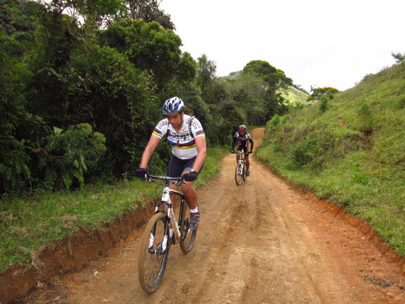 Estrada de chão e começamos a subir, devagar porque a subida é longa e forte. De inicio a subida estava com terra solta o que dificultou bastante. Chegamos na pior parte! Uma curva acentuada a direita o que exigia muito esforço para subir. Bastante concentração e enfim conseguir supera-la. Devagarzinho iamos superando cada desafio e cada subida. O tempo estava agradavel e depois de algumas paradas chegamos então ao topo do trajeto com 1215 m de altitude. Dai em diante foi mais tranquilo e logo já estavamos no restaurante tomando uma deliciosa coca e almoçando. Como não queriamos perder tempo decidimos logo sair rumo a descida do zig-zag. A melhor hora do passeio. A cada superação dos obstaculos sempre uma comemoração e logo o grande desafio já apontava, a descida. Paramos no inicio para fotografar e então começamos a descer. Que descida show de bola, com talento todos nós descemos. Em certo ponto nosso amigo João nos deu um susto, na trilha do single track ele desequilibrou e caiu num mato e por pouco quase não saiu rolando. Mas logo ele tratou de sinalizar que estava tudo bem. O ajudamos a sair do buraco onde caiu e seguimos pela trilha. Chegamos ao final com os pulsos doloridos pois a inclinação exige bem de nós. Sem demorar seguimos para Bananal onde paramos para fazer um lanche e então voltar para casa pelo asfalto. Foi um grande passeio. Boas risadas tivemos e passamos um otimo dia juntos. Com muita pedal, muita trilha e muito OFF ROAD. Segue a rota que fizemos http://connect.garmin.com/activity/179909087 . Valeu galera e até uma proxima.